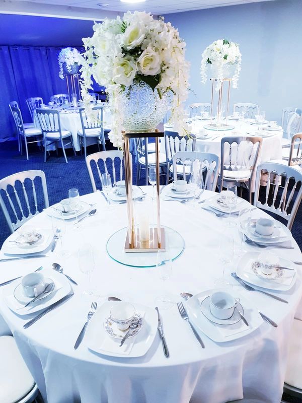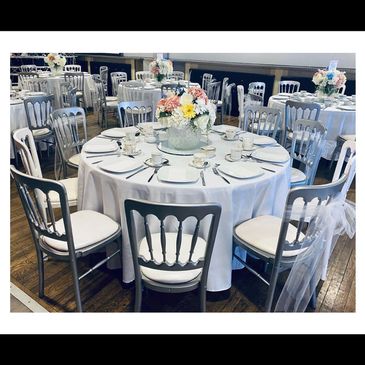 UPGRADE YOUR CHAIRS FROM AS LITTLE AS £20 PER TABLE, CENTERPIECES, CHAIR COVERS AND SASHES AVAILABLE AT ADDITIONAL COST