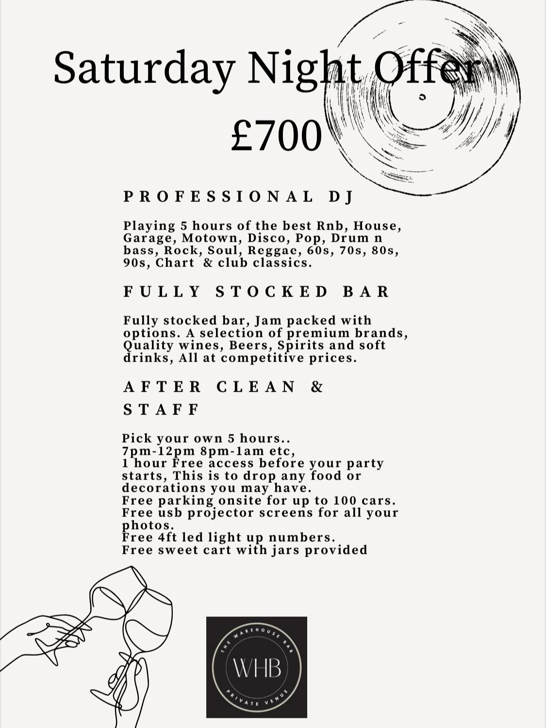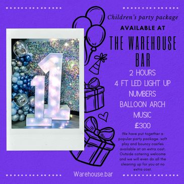 Birthdays, engagement parties, kids parties.This fee includes the bar staff for your event and full use of the down stairs area of the venue. Any tables or chairs you may need as well as table cloths.
