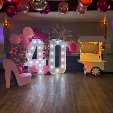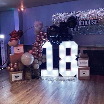 To add a Medium balloon arch to any light up numbers with a colour of your choice is £70 Extra.